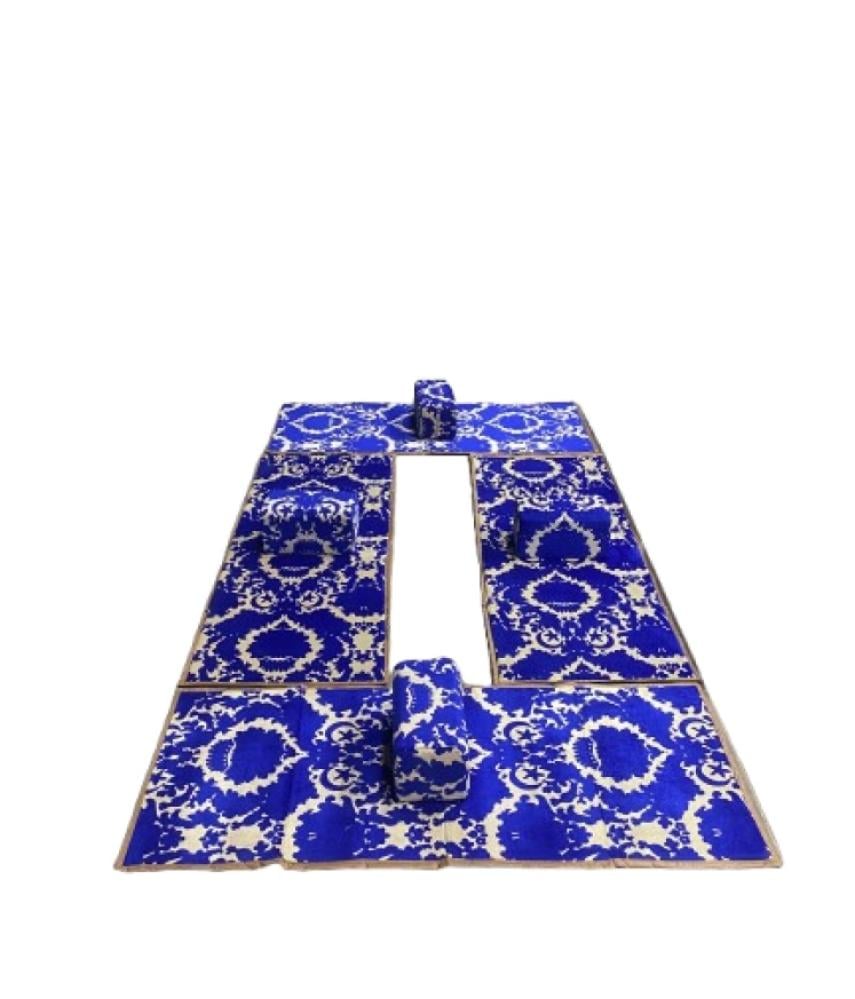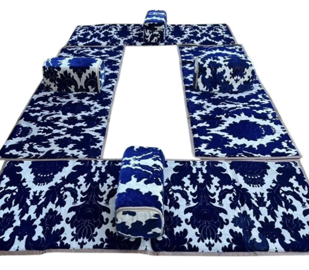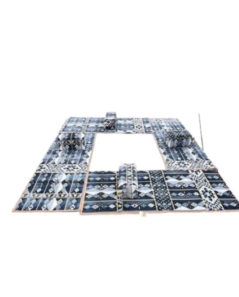 - ألوان عميقة وجذابة: يتميز الطقم بألوان زرقاء داكنة غنية مع نقوش بيضاء رائعة، مما يضفي لمسة من الفخامة على أي مناسبة.